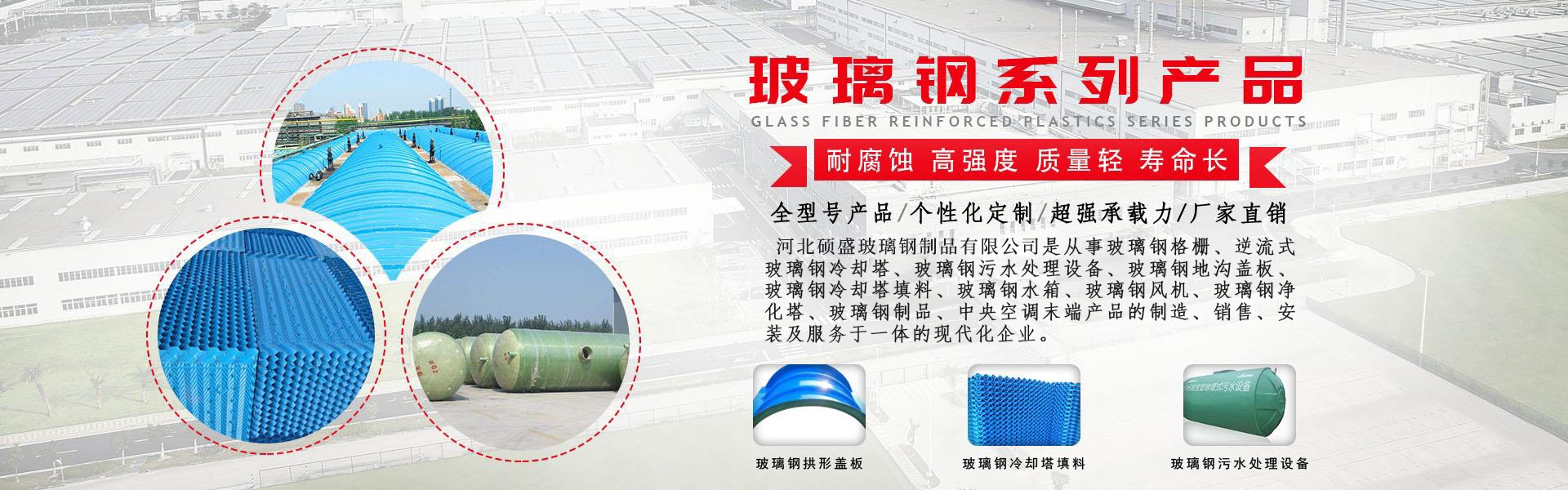 河北碩盛玻璃鋼制品有限公司,是從事洗車房玻璃鋼格柵蓋板、玻璃鋼拱形蓋板、玻璃鋼格柵蓋板、玻璃鋼地溝蓋板、玻璃鋼冷卻塔填料、橫流式玻璃鋼冷卻塔、逆流式玻璃鋼冷卻塔、玻璃鋼電纜橋架、玻璃鋼污水處理設(shè)備、污水池蓋板、玻璃鋼格柵、玻璃鋼冷卻塔、玻璃鋼水箱、玻璃鋼風(fēng)機、玻璃鋼凈化塔、玻璃鋼制品、中央空調(diào)末端產(chǎn)品的制造、銷售、安裝及服務(wù)于一體的現(xiàn)代化企業(yè)。我公司已成為集工程預(yù)算、技術(shù)咨詢、產(chǎn)品設(shè)計、制造、安裝調(diào)試、售后服務(wù)于一體的公司,形成了一整套規(guī)范化、科學(xué)化、系統(tǒng)化管理體系。產(chǎn)品遍布天津、遼寧、山西、江蘇、內(nèi)蒙、湖北、黑龍江、貴州等地區(qū)。